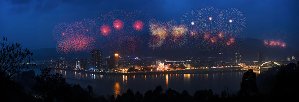 图:节日期间,中九游会J9官方网站沙湾、安谷水电站所在地嘉州(乐山)烟火绚丽