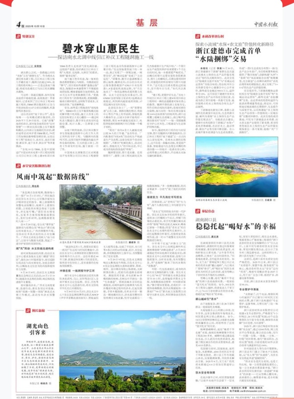 10月10日,《中国水利报》在第四版以《碧水穿山惠民生——探访南水北调中线引江补汉工程隧洞施工一线》为题报道了水电十四局参建的引江补汉工程建设情况。